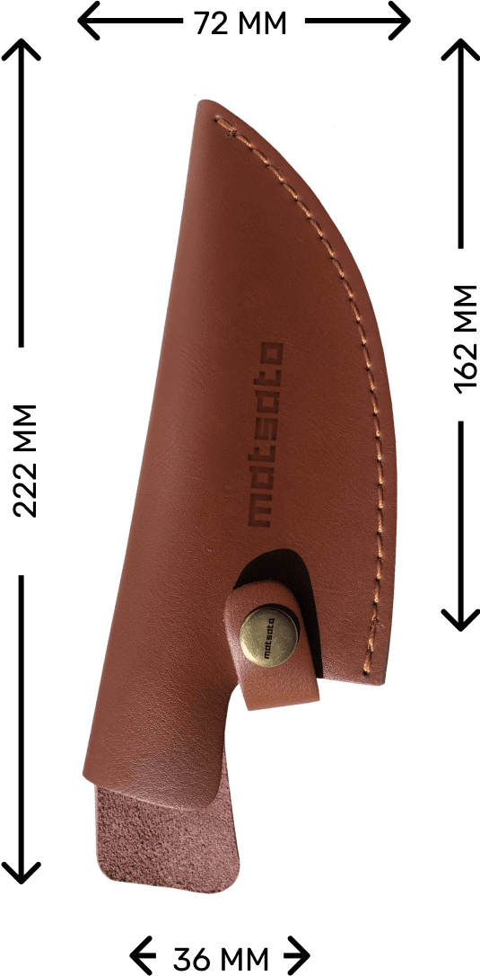 The Matsato Leather Sheath was created to perfectly mold around your Matsato knife, hugging it from the tip, right to the handle to keep your blade well protected. It provides extra padding to safeguard against accidental bumps and has a secure clasp to ensure your Matsato knife stays safely inside.